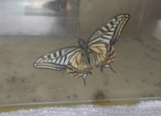 もも組の子どもたちが昨年育てていたサナギから、アゲハチョウが生まれました。