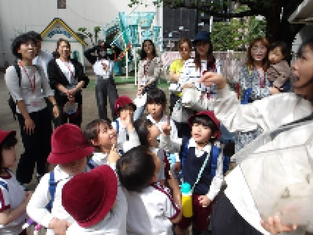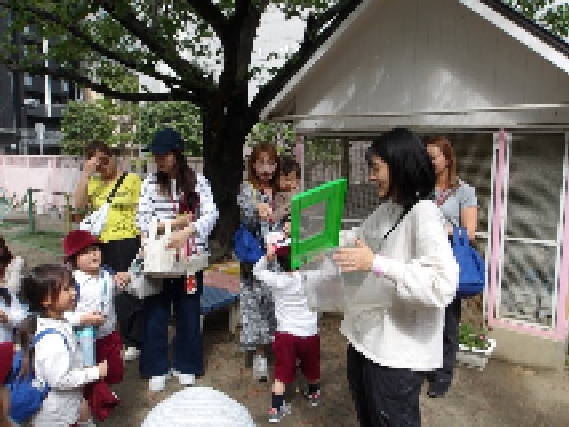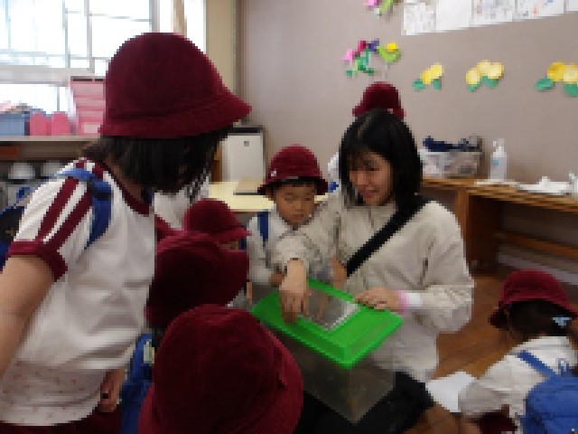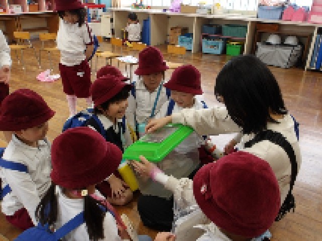 「チョウチョがいてる!!」と飼育ケースを覗きこんでいた子どもたち。