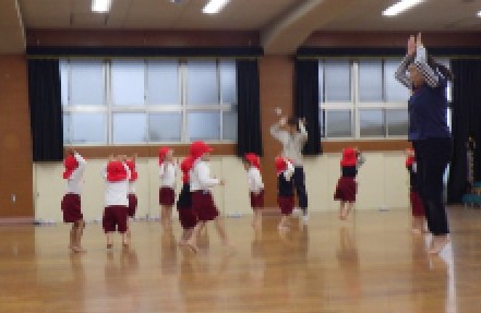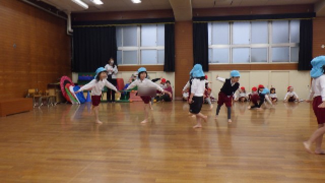 あか組さんはとってもドキドキしている様子だったので、初めはそら組さんと手をつないで歩きました。だんだん楽しくなってきて、最後にはにこにこ笑顔でいろいろな動きをしていましたよ!そら組、もも組の子どもたちは、走っているときのスピード感があり、身体全体をしっかり動かしていて、とてもかっこよかったです!