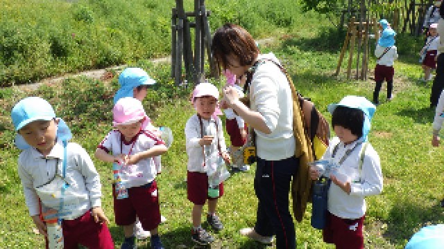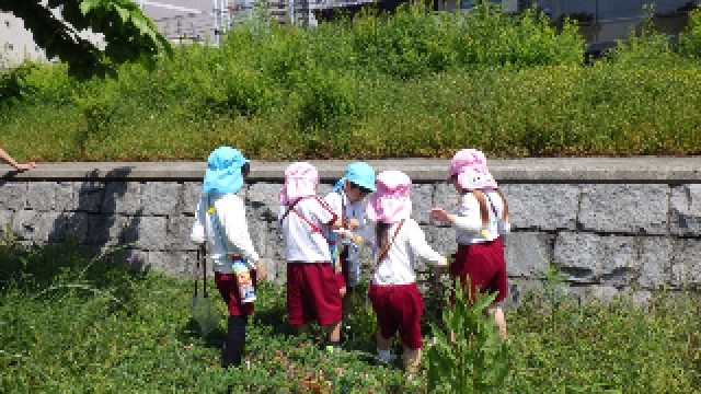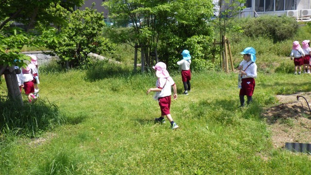今年度初めての園外散歩でしたが、歩き方もとっても上手で、危なくないように前の人と間をあけずに歩くことができました。天神浜ではいろいろな草花を見つけていました。見つけた草花を先生や友達と見せ合ってとても嬉しそうでしたよ!
