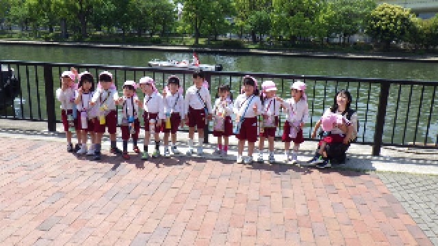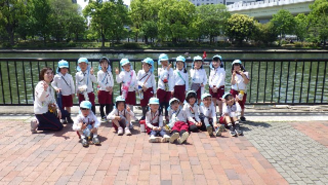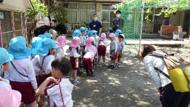 とってもいいお天気だったので、暑いくらいでしたが、幼稚園までしっかり歩くことができました。最後に、子どもたちが安全に歩くことができるようにお手伝いしてくださった北区のあんまち隊の方にみんなでお礼を言いました。