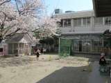 園庭の桜が満開になり、とてもきれいです。 春休みの預かり保育では、桜の花びらを集...