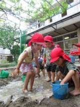 今日は蒸し暑く、どろんこ遊びをしたり、スーパーボールすくいをしたり、水を触って遊...