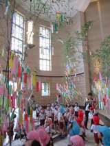 もも組は保護者の方と一緒に七夕飾りを作りました。保護者の方に手伝っていただき、と...