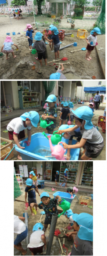 お天気のいい日はプール遊びを楽しんでいる子どもたち。 今日は午後から、どろんこ遊...
