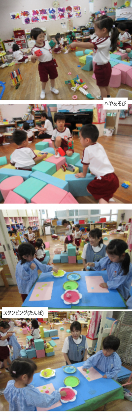 幼稚園には子どもたちの好きな遊びがたくさんあります。 雨の日も、室内で絵の具遊び...