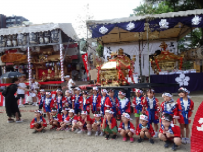 地域のお祭りに、希望者が参加しました。 天満宮から幼稚園まで、みんなで力を合わせ...