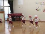 お部屋でたっぷり遊んだ後は、遊戯室に集まって会を行いました。遊戯室に全園児とおじ...