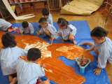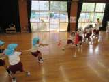 今日は、5歳児だけ、小学校の校庭に出かけました。いつも遊戯室で行っている綱引きを...