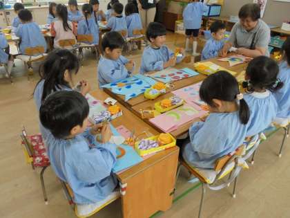 自分なりに形を考えて紙を切り、向きや間隔をいろいろと試しながら、仕上げていきました。