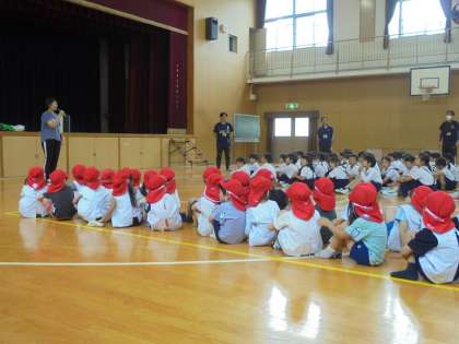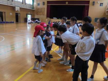 3年生と、こんにちは!(5歳児:幼小交流) 公開日 2024/05/30 更新日 2024/05/30 日常の様子 滝川小学校の体育館で、3年生のお兄さんお姉さんとよろしくねの会をしました。 一緒に藤田邸跡公園に遊びに行くことを予定しているのですが、事前に交流をしたことで3年生に親しみをもち、楽しみがもっと大きく膨らんだようです(^^)/ 「名前は何ですか?」と聞いてもらって、はにかみながらもしっかりと自己紹介をしていたばら組でした! いいね(0) 5歳児
