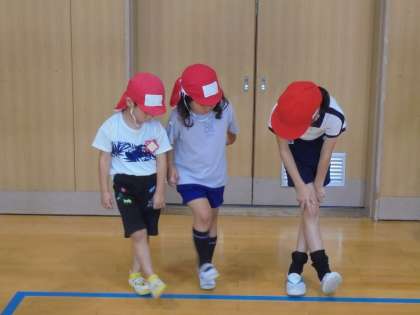 幼稚園のみんなにとってはちょっぴり動きが忙しいダンスでしたが、6年生のみなさんが根気強くひとつずつ振付を教えてくれて、出来たら「すごいね!できてるよ〜!!」といっぱい褒めてくれました(^^♪