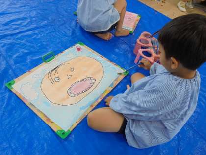 ばら組は、自分の顔をパスや絵の具をつかってかきました。