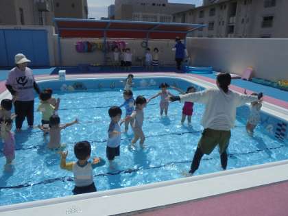 プール楽しい! 公開日 2024/07/04 更新日 2024/07/04 日常の様子 蒸し蒸しした気候を吹き飛ばすような歓声が、プールから響いています♪ 全身で水の感触を味わいながら、友達と一緒に大興奮です! ばら組は、ドキドキしながら顔つけに挑戦! さくら組は、友達と水かけ競争(^▽^)/ たんぽぽ組は、保育室でも人気のダンスをプールでも楽しんでいました♪ まだまだいっぱいプール遊びを楽しもうね! いいね(0) 3歳児 4歳児 5歳児