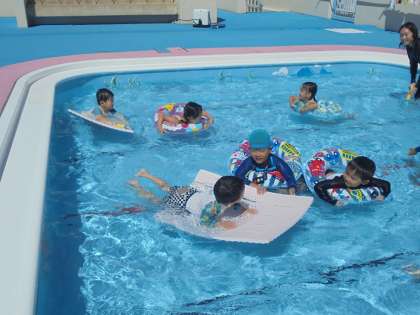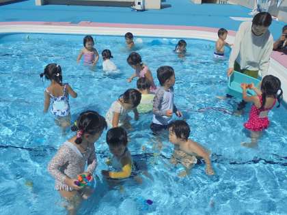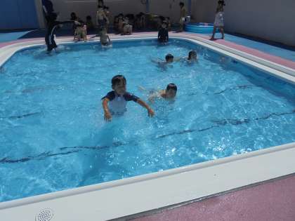 もぐったり、水の中で思い切りジャンプしたりと、1学期よりも水に親しんで遊ぶ姿がどのクラスも見られました☆