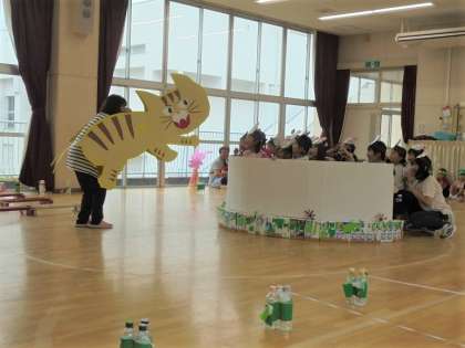 運動会ごっこ 公開日 2024/10/04 更新日 2024/10/04 日常の様子 朝から雨が降っていましたが、幼稚園のホールでは熱気あふれるミニ運動会(運動会予行)が行われました(^^)/ みんなで一緒に体操したり、他のクラスの遊びを見たりして、どの子どもも楽しそうにしていました! 「うんどうかい、あ〜たのしかった!!」 早くお家の人にも見てもらいたいですね♪ いいね(0) 3歳児 4歳児 5歳児