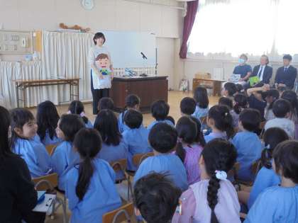 まずは歯科衛生士の方から、エプロンシアターを使って歯みがき指導をしていただきました。