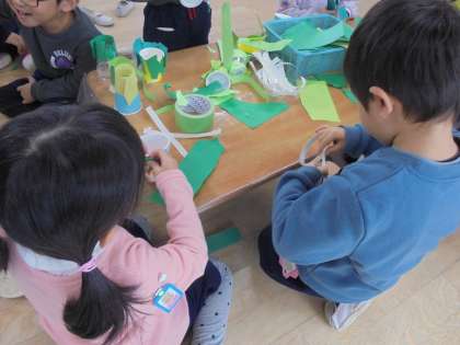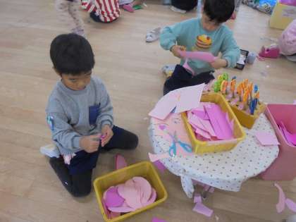 さくら組では、みんなが一生懸命チョキチョキとハサミで何かつくっていました。