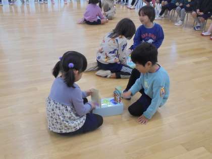 ばら組がつくってくれたプレゼントのとんとんずもうにも、興味津々でどのクラスも見ていました(^^♪
