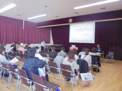 成人教育講座として、北区役所地域課の方を講師にお招きし、防災をテーマにした講演をしていただきました。