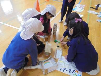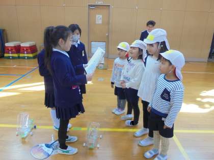 スマイルタイムDX(幼小交流) 公開日 2025/02/14 更新日 2025/02/14 日常の様子 今日のスマイルタイムは、デラックス! 2年生のみなさんと、さくら組・ばら組が交流しました。 お兄さん・お姉さんが考えてつくってくれたいろいろなおもちゃで、存分に楽しみました♪ 遊び方を教えてもらうときは真剣に聞いていて、小学生にますます憧れの気持ちをもったようです(^^♪ いいね(0) 4歳児 5歳児