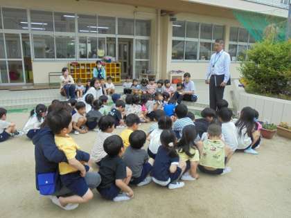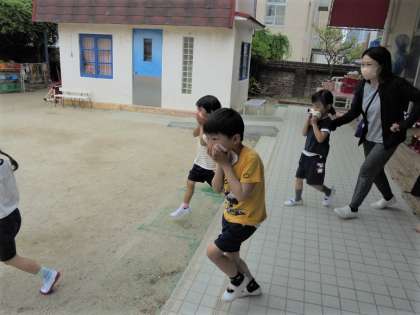 非常ベルを怖がる様子もありましたが、お兄さん・お姉さんたちが静かに素早く逃げてくる様子を、真剣に見ていました。