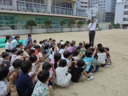 園長先生の話もみんな静かに聞いていて、保育室へもどるときも静かにしていた子どもたちです。