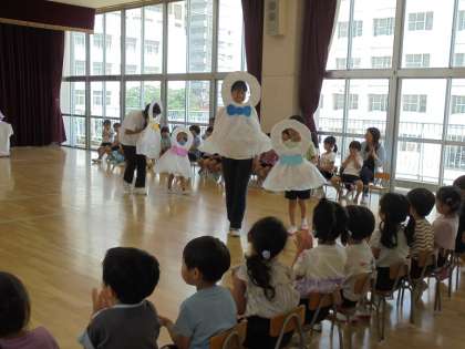 6月誕生会 公開日 2025/06/18 更新日 2025/06/18 日常の様子 6月の誕生会は、💧雨💧にちなんだ遊びがたくさんでした💧 誕生児がてるてるぼうずになって出てきたり、カタツムリになってゲームをしたり・・・ 最後には、みーんなでカエルになって楽しく踊りました☆ 次の誕生会は、どんな楽しいことが待ってるかな〜☆☆☆ いいね(0) 3歳児 4歳児 5歳児