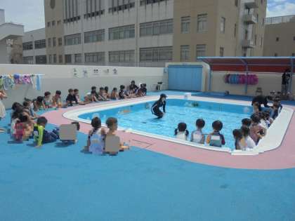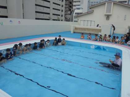 プール開き できた〜! 公開日 2025/06/25 更新日 2025/06/25 日常の様子 今日の朝も、お日様は雲に隠れていました・・・ ところが、子どもたちがプールサイドにきたとたん、お日様が顔を出してくれました! いい天気の中、テープカットとともにプール開きです♪ 初日なので水深は低めですが、全身で水の気持ちよさを感じながら遊んだ子どもたちです(^^♪ これから、プール遊びをいっぱい楽しもうね♪ いいね(0) 3歳児 4歳児 5歳児