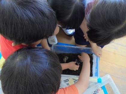 登園時には土の中に潜っていますが、昆虫ゼリーを取り替えるときにもそもそと、土の上に顔を出してくれるのです(^▽^)/