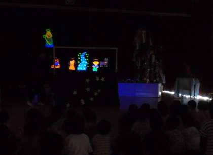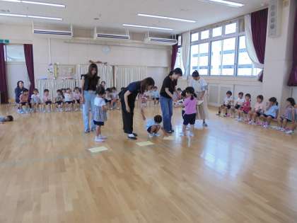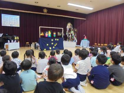 園長先生のおもしろい手作りおもちゃを見たり、おうちの人との遊びを楽しく見たりした後は、ペープサートで織姫と彦星のお話を聞きました☆