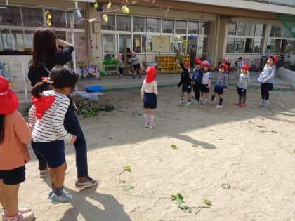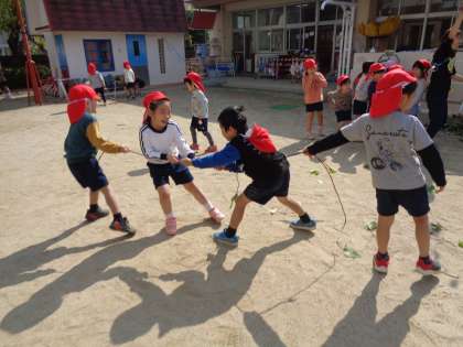 幼稚園で、おいもほり 公開日 2022/11/04 更新日 2022/11/04 日常の様子 サツマイモを掘った後は、いものつるや葉っぱで遊びました。「オーエス!オーエス!」と友達と綱引きごっこや、縄とびをして遊びました。 いいね(0)