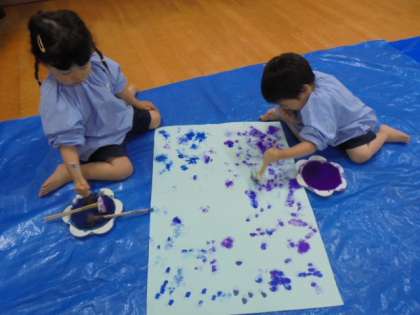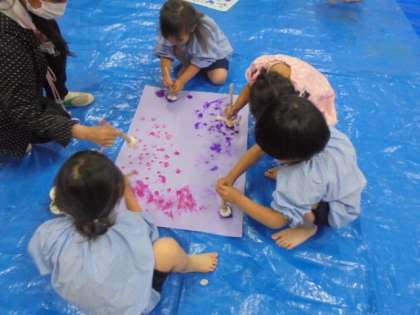 いろいろな色で、夢中になって遊んでいたたんぽぽ組です。