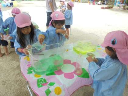 混ぜたらどうなる・・・?(4歳児) 公開日 2023/06/06 更新日 2023/06/06 日常の様子 きれいな色水を使って、毎日夢中になって遊んでいます! 「赤と黄色混ぜたら、なんか色変わったー!」「全部混ぜたら、違う色になったよ」など、色の変化を楽しんでいます。 あれこれ試しながら、友達と比べっこしています♪ いいね(0) 4歳児