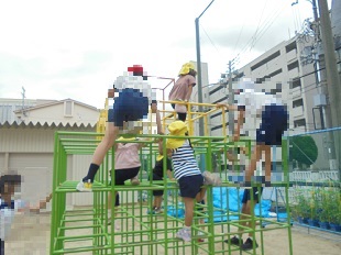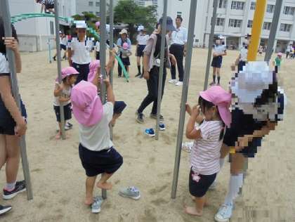 たんぽぽ組とさくら組は、遊具で遊んだり鬼ごっこをしたりして、遊んでもらいました。