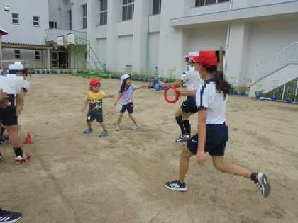 ばら組は、6年生とばら組を2チームに分け、なんと混合でリレーをしました!
