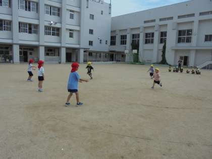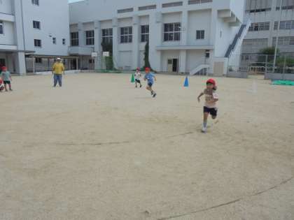 小学校の広い運動場で、思いっきり走りました!