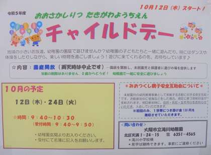 10月12日(木)より、チャイルドデー(未就園児園庭開放)を実施します。