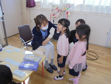 園医(歯科)・歯科衛生士・歯科医の方々に来ていただき、大阪市の口腔衛生指導事業の一環として、歯みがき指導をしていただきました。