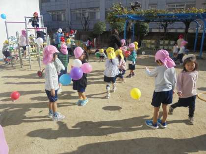 好きな色を集めたり、友達と風船サッカーをしたりしながら存分に遊びました。
