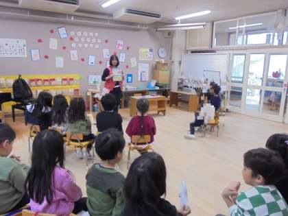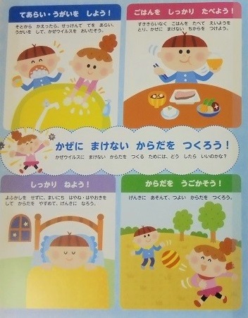 養護教諭から風邪に負けない元気な体づくりの話を聞いて、毎日のうがい、手洗いの大切さを再確認している子どもたちです。