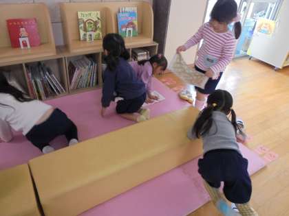みんながお気に入りの絵本コーナーも、しっかり拭いてピカピカに☆