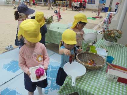 カップに入れて、花の色を楽しんだり、手触りを楽しんだりしている子どももいました☆
