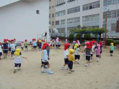 ばら組がたんぽぽ組の手を引いて優しく歩いたり、さくら組は友達とにこにこしながら参加したりと、どの子どもたちもとても楽しそうです♪