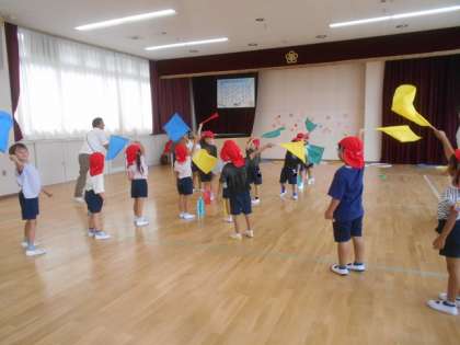 腕をぴたっ!(5歳児) 公開日 2025/09/29 更新日 2025/09/29 日常の様子 ばら組では、フープや旗、縄など、腕をたくさん使う遊びを楽しんでいます☆ 普段は重さを感じずに遊んでいても、腕を横や上に上げてぴたっ!と静止すると・・・ 「ふらふらする〜」 「なんか腕、疲れるな・・・」 軽そうに見える遊具でも、持ち上げてじっとしてみるとズシッときているようです(^^) 遊具を使って遊びながら、少しずつ体を鍛えている毎日です♪ いいね(0) 5歳児
