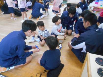 どんなおもちゃがあるのかな〜と、ワクワクして待っていた子どもたちなので、お兄さん・お姉さんが見せてくれた手作りおもちゃに大喜び🌝