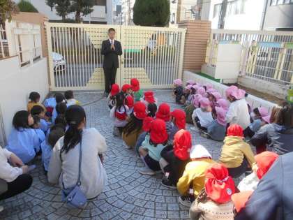 避難場所もいつも避難する小学校とは違い、幼稚園の通用門に逃げましょうとの放送でしたが、子どもたちは慌てることなく、先生たちの話をしっかり聞いて避難することができていました。