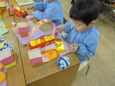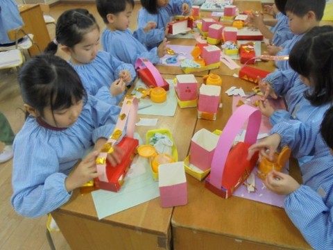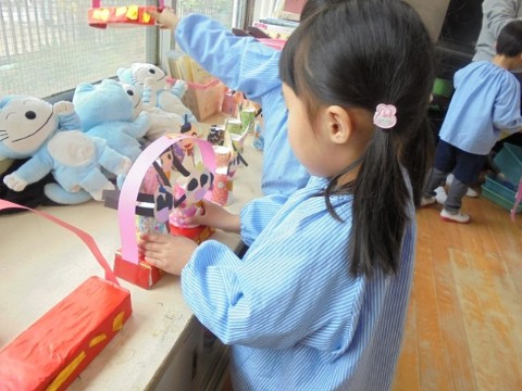 きれいに飾ってあげたいな🎎(4歳児) 公開日 2026/02/26 更新日 2026/02/26 日常の様子 幼稚園に大きなひな人形を飾ったことをきっかけに、各クラスで自分のひな人形づくりに取り組んでいます。さくら組では、おひなさまとおだいりさまを飾る、台をつくっていました✨牛乳パックに赤い紙を貼り、金色の紙で豪華にデコレーション✨✨完成した台に乗せてもらったおひなさまたちも、うれしそうです💗おうちに持って帰る日が、待ち遠しいですね🌝 +1 いいね(0) 3歳児 4歳児 5歳児