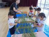 ホールに大きな笹がやってきました。 クラスでつくったいろいろな飾りをもって、自分...