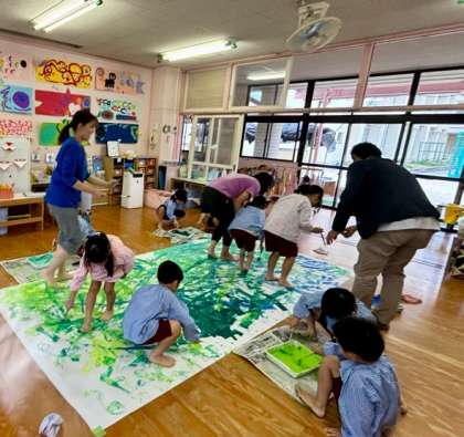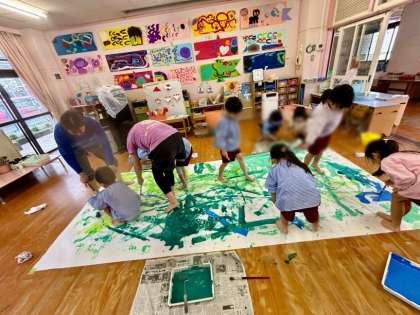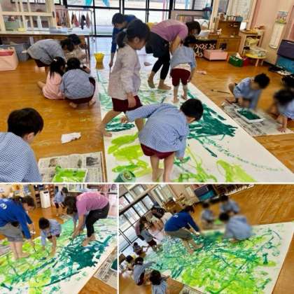 絵筆とローラーを使って、ひろ〜いおうちをかきました。草っ原が広がったので、きっとテントウムシさんも喜んでくれることでしょう(^-^)v